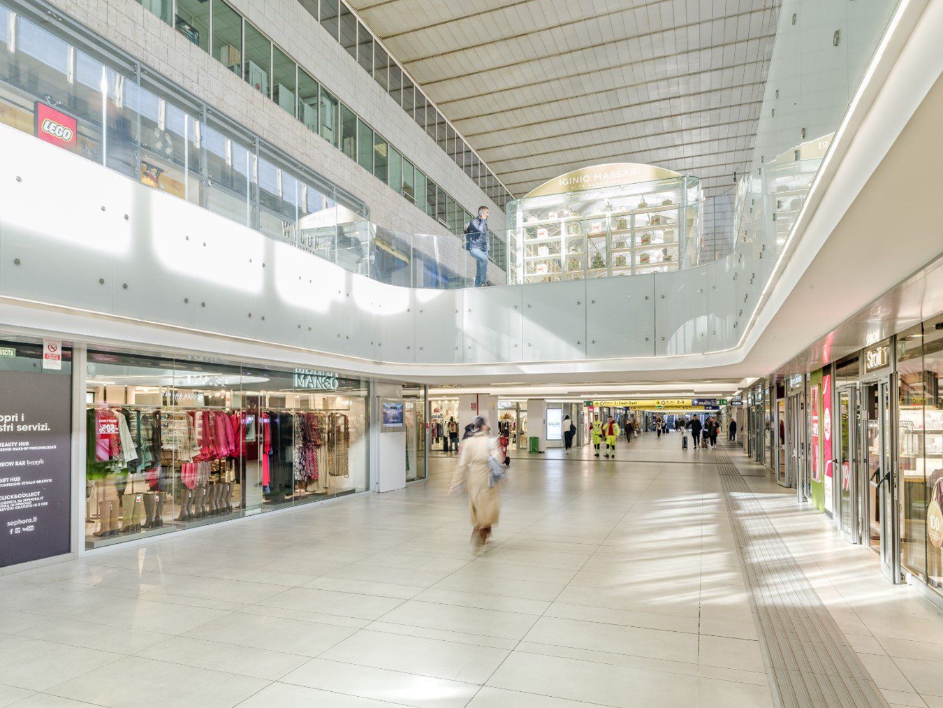 Additionally, the commercial areas in the Dinosaur and Gommata Gallery were remodeled. Volumes were grouped into easily identifiable units, creating a cohesive aesthetic to enhance the monumental value of the station.