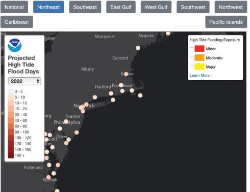 Coastal communities across the United States continue to experience more-frequent high-tide flooding, forcing residents and visitors to deal with flooded shorelines, streets and basements. Similar to 2022 meteorological conditions, many regional HTF frequencies were lower, likely related to continued effects of La Niña.