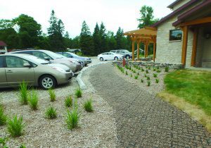 Protecting Lake Michigan’s watershed was a primary concern at this facility’s location adjacent to the lake’s western shores. The porous pavements were an important part of the overall plan to protect the waters against the negative effects of stormwater runoff on water quality. The GEOPAVE system, infilled with highly porous stone, allows water infiltration and acts as a natural, onsite stormwater retention system, storing stormwater in its aggregate base after rain events and allowing for natural percolation. GEOPAVE pavements are designed to accept everyday traffic from cars, trucks and emergency vehicles.