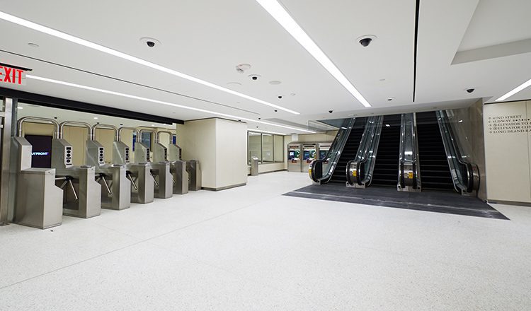 The long-shuttered passageway between Grand Central and the Socony-Mobil Building at 150 E. 42nd Street has also re-opened with the addition of two street-level subway entrances and a new entrance to the 42nd Street subway station on the southeast corner of 42nd Street and Lexington Avenue. Circulation space on the subway platforms and mezzanine has been increased by 37 percent, providing commuters more room to socially distance and allowing for increased capacity once transit use rebounds to pre-pandemic levels. Enhanced finishes, additional turnstiles and gates, new stairways, escalators, and an ADA-accessible elevator have been added to ease congestion and improve transfers and the overall transit experience in the third busiest station in the New York City subway system.