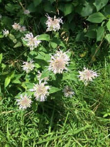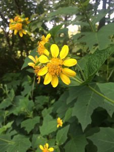 The native Mondard fistulosa (bee balm, left) and Smallanthus uvedalia (bearsfoot flower, right) are commonly found onsite.