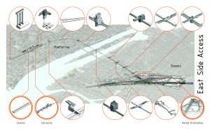 The BIM procedures have also been instrumental in enabling project team members to determine the feasibility of numerous on-site operations, such as moving large mechanical and electrical equipment through a ventilation facility. To address the spatial constraints inherent in underground construction, the VDCO team not only modeled the equipment to be installed, it also modeled the proposed access routes. (Deliveries are not allowed from the streets. Instead, the only way through was to bring materials and equipment from Queens or Harlem.)