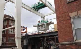 “The northern limits of the work area are highly congested. We’re working between buildings and using alleyway access to build infrastructure valued in the billions,” says Schultz of a situation that made ground-up construction far from affordable and much more of a public nuisance. “Using a top-down construction methodology, a launching gantry crane is supported on the new substructure columns. The launching gantry crane erects the bridge superstructure using the span-by-span method, which allows all precast segments in a single bridge span to be erected in one cycle. Once the span is erected, the launching gantry crane crawls forward over the newly completed span to the next substructure columns. Separately, a fixed-bay gantry crane lifts segments off the truck, hoists them onto the previously constructed spans to deliver the segments from behind. This is a very modern way to insert a massive piece of infrastructure into an urban condition with minimal impact to the community outside of the work zone.”