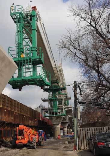“We saw a lot of advantages in using precast segmental, span-by-span construction,” says Schultz of the design alternative that was somewhat a hard sell to CTA. “Fundamentally, using precast segments instead of steel came down to time and money. This building solution shortened the construction schedule by seven months, reduced construction costs and greatly minimized the impact on non-CTA traffic during construction. Once CTA was confident in our ability to isolate stray current, the segmental solution came to life.”