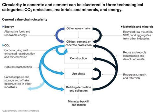 A circular economy of concrete and cement could produce $110 billion in net value and avoid or mitigate 2 billion tons of CO2 emissions by 2050, according to a new McKinsey & Company report.