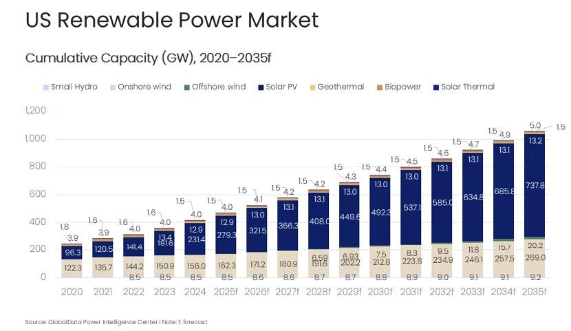 GlobalData’s latest report, “United States Power Market Outlook to 2035: Market Trends, Regulations and Competitive Landscape,” reveals that renewable power capacity growth in the United States is supported by state renewable portfolio standards and clean electricity standards, long-term utility integrated resource plans and sustained corporate power purchase agreement activity from technology, manufacturing and data-center operators.