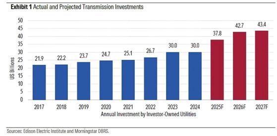According to Morningstar DBRS, utilities in the United States have forecast annual compound growth in electricity demand of around 2.5 percent by 2035, compared with the compound growth of 0.5 percent witnessed from 2014 to 2024. Along with the increased demand, the industry faces concerns about continued reliability, resource adequacy and affordability as it works to ensure transmission capacity.