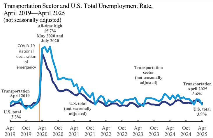 April 2025 U.S. Transportation Sector Unemployment Falls Below April 2024 Level