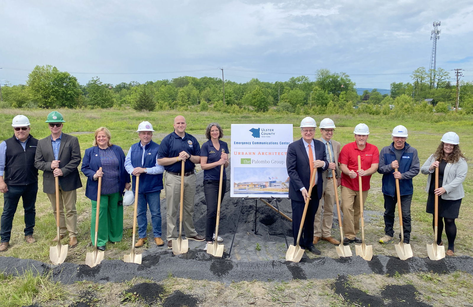 New Paltz, NY–Ulster County Executive Jen Metzger, alongside elected officials, emergency personnel, and the project team of lead architect Urbahn Architects, construction manager The Palombo Group, consulting architect Alfandre Architecture and contractors celebrated the groundbreaking for the Ulster County Emergency Communications Center (ECC) in New Paltz. The state-of-the-art facility will strengthen coordinated emergency response capabilities and improve the climate resilience of the County’s emergency management system. Currently, the County’s Emergency-911 call center answers more than 130,000 emergency and non-emergency calls per year.
