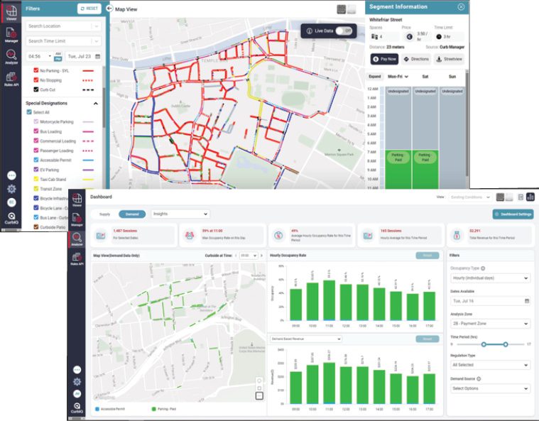 For example, data from curbside sensors and cameras can reveal bottlenecks, safety concerns and environmental impacts. Customized dashboards can provide aggregated metrics on occupancy rates, dwell times, number of users and revenue per curb space. This analysis helps cities make data-driven decisions to optimize curb usage, improve safety and potentially increase revenue.