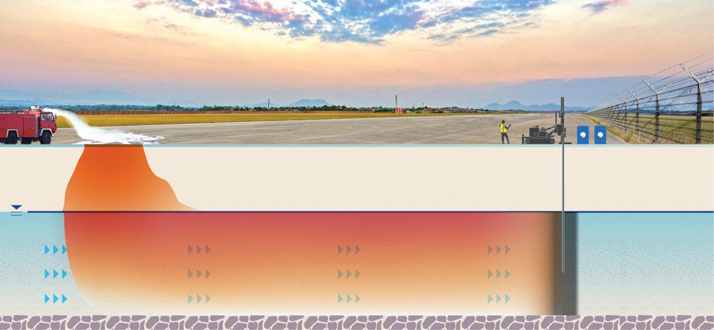 A field application on a U.S. airport uses a colloidal activated carbon (CAC) barrier to address PFAS groundwater impacts caused by an aqueous film forming foam (AFFF) concentrate, a firefighting foam being phased out of use due to its high levels of PFAS.