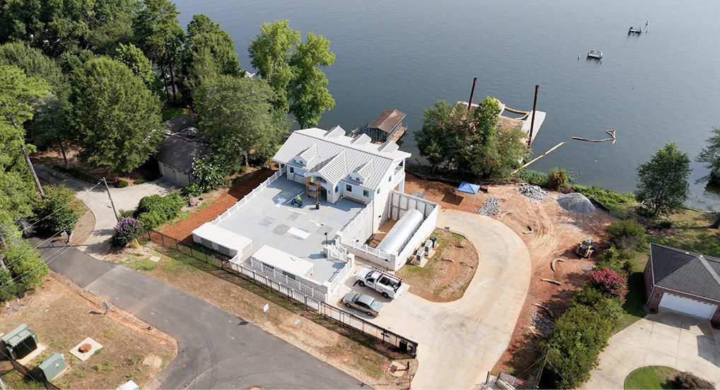 Situated in the picturesque Norwood neighborhood overlooking Lake Tillery, many property owners cherish these residences as tranquil retreats or vacation homes. Traditionally, water-supply infrastructure installations such as intake facilities and pump stations have an industrial look that risks disrupting the serene ambiance of their surroundings. To counteract this potential discord, Union County pursued an innovative approach, employing an architectural design for the facility that mimics the appearance of a lake house to seamlessly fit in with its neighbors.